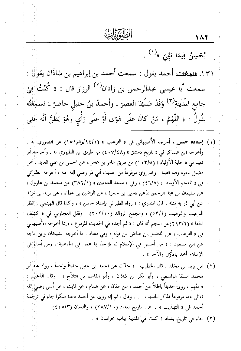 131 - سمعت أحمد يقول: سمعت أحمد بْنَ إِبْرَاهِيمَ بْنِ شاذَان يَقُولُ: سمعت أبا عيسى عبد الرحمن بن زاذان (¬2)