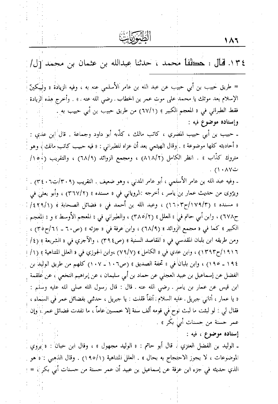 134 - قال: حدثنا محمد، حدثنا عبد الله بن عثمان بن محمد