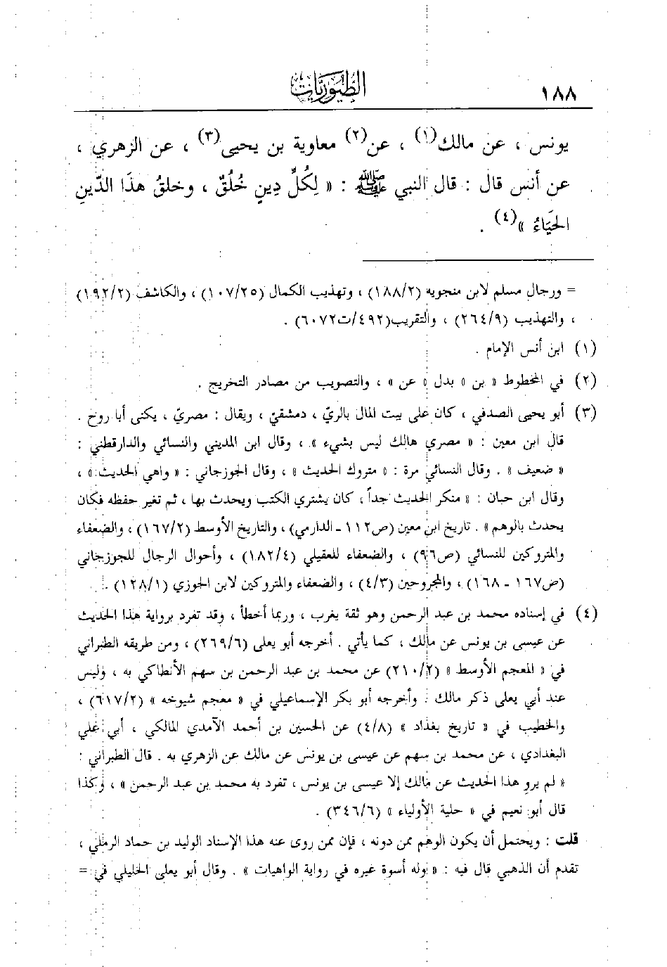 ، عَنِ الزُّهْرِيِّ، عَنْ أَنَسٍ قَالَ: قَالَ النَّبِيُّ صَلَّى اللَّهُ عَلَيْهِ وَسَلَّمَ: ((لِكُلِّ دِينٍ خُلُقٌ، وخلقُ هذَا الدّينِ الحَيَاءُ)) (¬4)