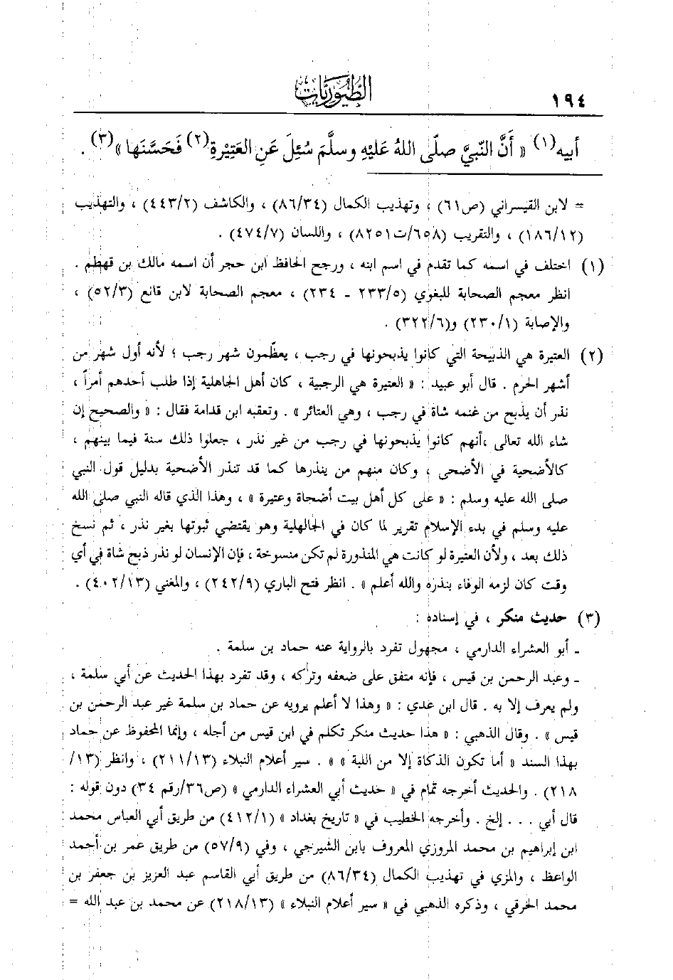 (¬2) العتيرة هي الذبيحة التي كانوا يذبحونها في رجب، يعظّمون شهر رجب؛ لأنه أول شهر من أشهر الحرم.