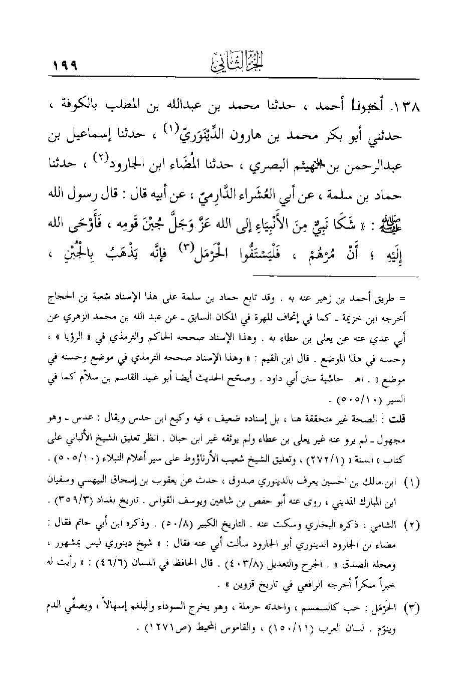 138 - أَخْبَرَنَا أَحْمَدُ، حَدَّثَنَا مُحَمَّدُ بْنُ عبد الله بْنِ الْمُطَّلِبِ بِالْكُوفَةِ، حَدَّثَنِي أَبُو بكر محمد