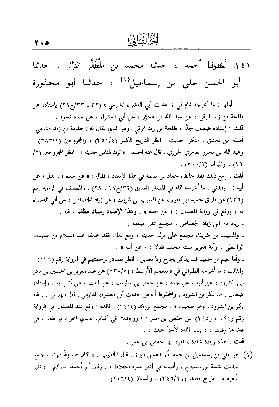 141 - أَخْبَرَنَا أَحْمَدُ، حَدَّثَنَا مُحَمَّدُ بْنُ المُظَفَّر البَزَّاز، حَدَّثَنَا أَبُو الْحَسَنِ علي
