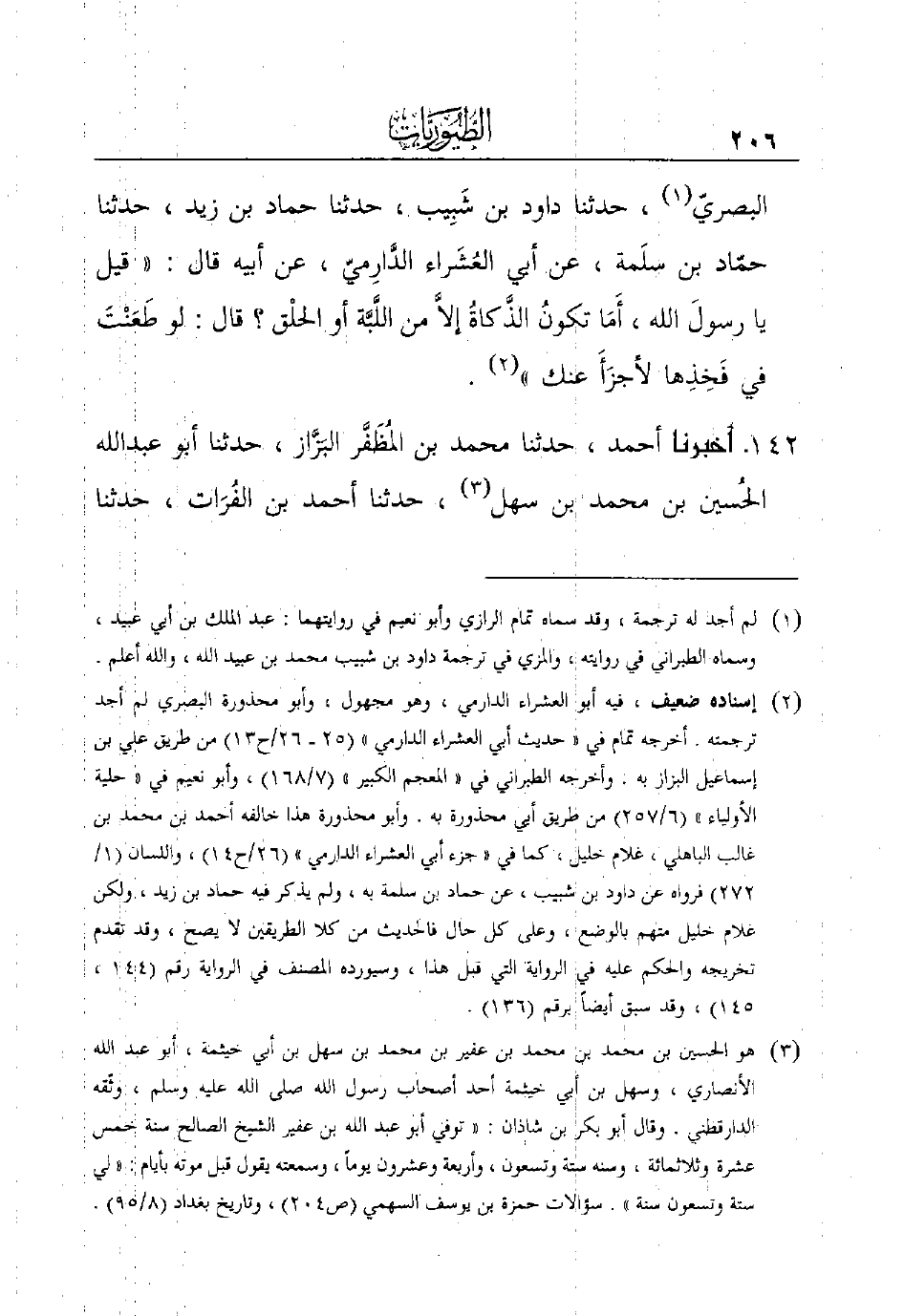 142 - أَخْبَرَنَا أَحْمَدُ، حَدَّثَنَا مُحَمَّدُ بْنُ المُظَفَّر البَزَّاز، حدثنا أبو عبد الله الحُسين بن محمد ابن سَهْلٍ (¬3) ، حَدَّثَنَا أَحْمَدُ بْنُ الفُرَات، حَدَّثَنَا