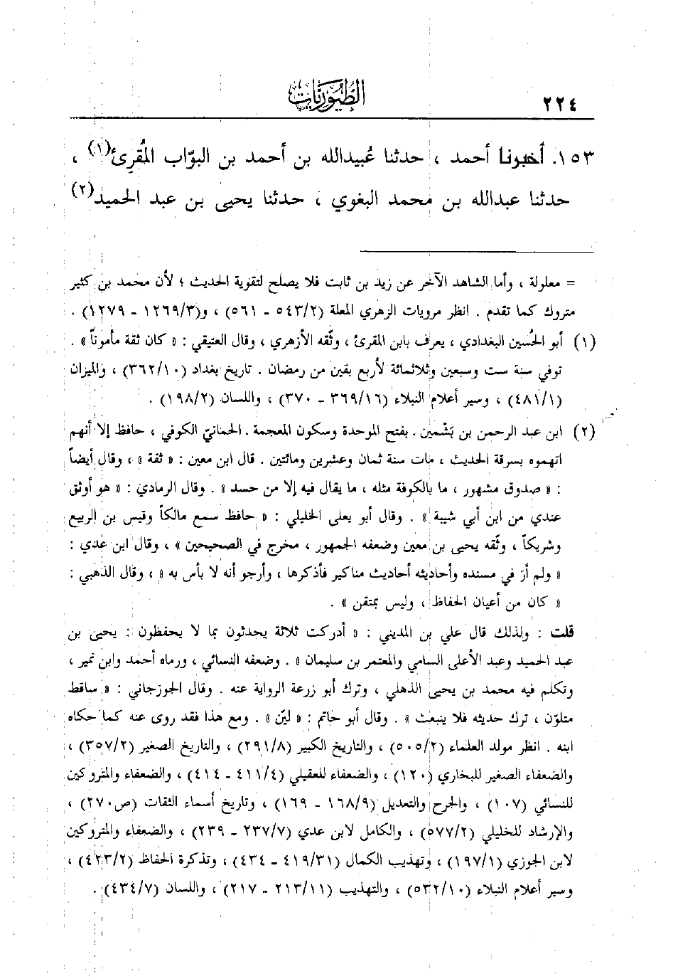 153 - أخبرنا أحمد، حدثنا عُبيدالله بْنُ أَحْمَدَ بْنِ الْبَوَّابِ المُقرِئ (¬1)