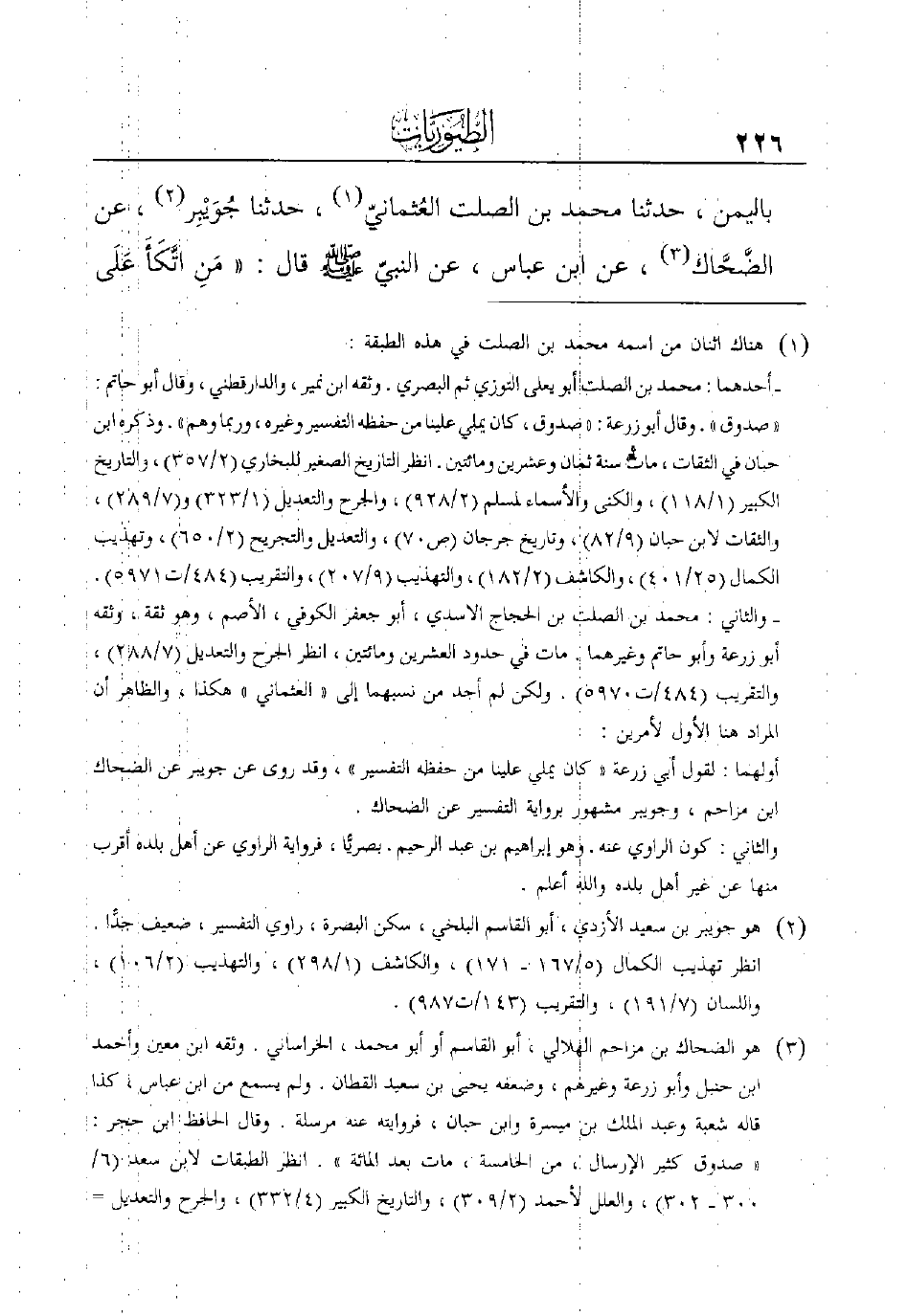 بِالْيَمَنِ، حَدَّثَنَا مُحَمَّدُ بْنُ الصَّلْتِ العُثمانيّ (¬1) ، حَدَّثَنَا جُوَيْبِر (¬2) ، عَنِ الضَّحَّاك (¬3)