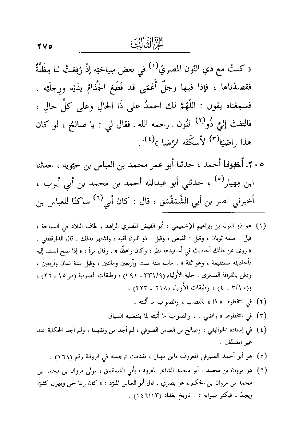 205 - أخبرنا أحمد، حدثنا أبو عمر محمد بن العباس بن حيويه، حدثنا ابن مِهيار (¬5) ، حدثني أبو عبد الله أحمد بن محمد بن أبي أيوب، أخبرني نصر بن أبي الشَّمَقْمَق، قال: كان أبي (¬6) ساكنا للعباس بن