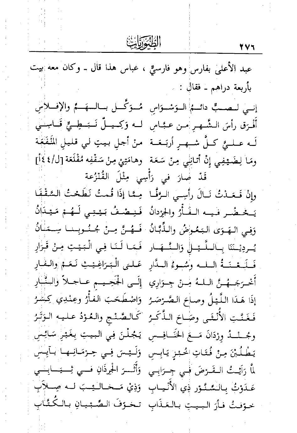 عبد الأعلى بفارس وهو فارسيٌّ، عباس هذا قال -وكان معه بيت بأربعة دراهم- فقال: