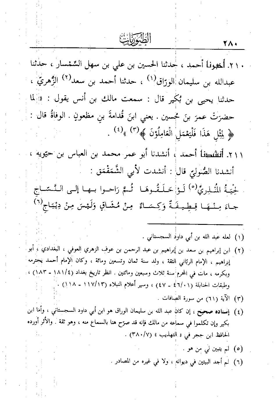 210 - أَخْبَرَنَا أَحْمَدُ، حَدَّثَنَا الْحُسَيْنُ بْنُ علي بن سهل السِّمْسار، حدثنا عبد الله