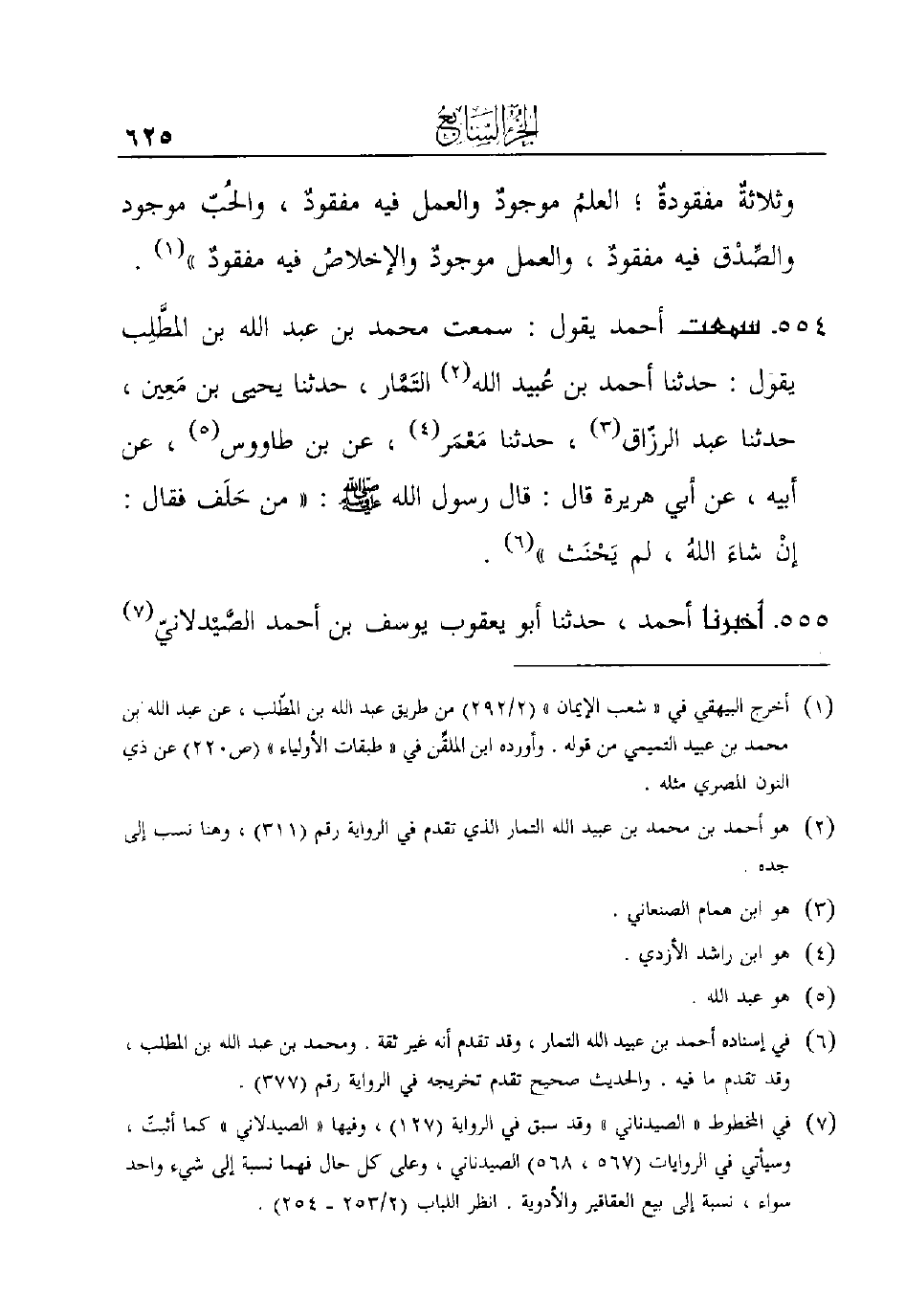 554 - سَمِعْتُ أَحْمَدَ يَقُولُ: سمعت محمد بن عبد الله بْنِ المطَّلِب يَقُولُ: حَدَّثَنَا أَحْمَدُ