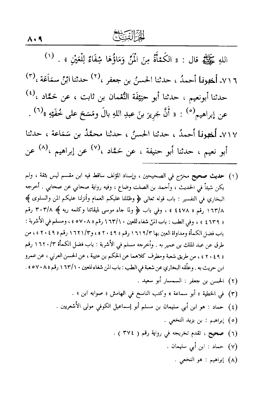 716 - أَخْبَرَنَا أحمدُ، حَدَّثَنَا الحسنُ بْنُ جعفر، (¬2) حدثنا ابْنُ سمَاَعَة، (¬3) حدثنا أبونعيم، حدثنا أبو حنِيْفَة النُّعْمان بن ثابت، عن حَمَّاد، (¬4) عن إبراهيم (¬5) : ((أَنَّ جَرِيرَ بنَ عبدِ اللهِ بالَ ومَسَحَ على خُفَيْهِ)) (¬6) .