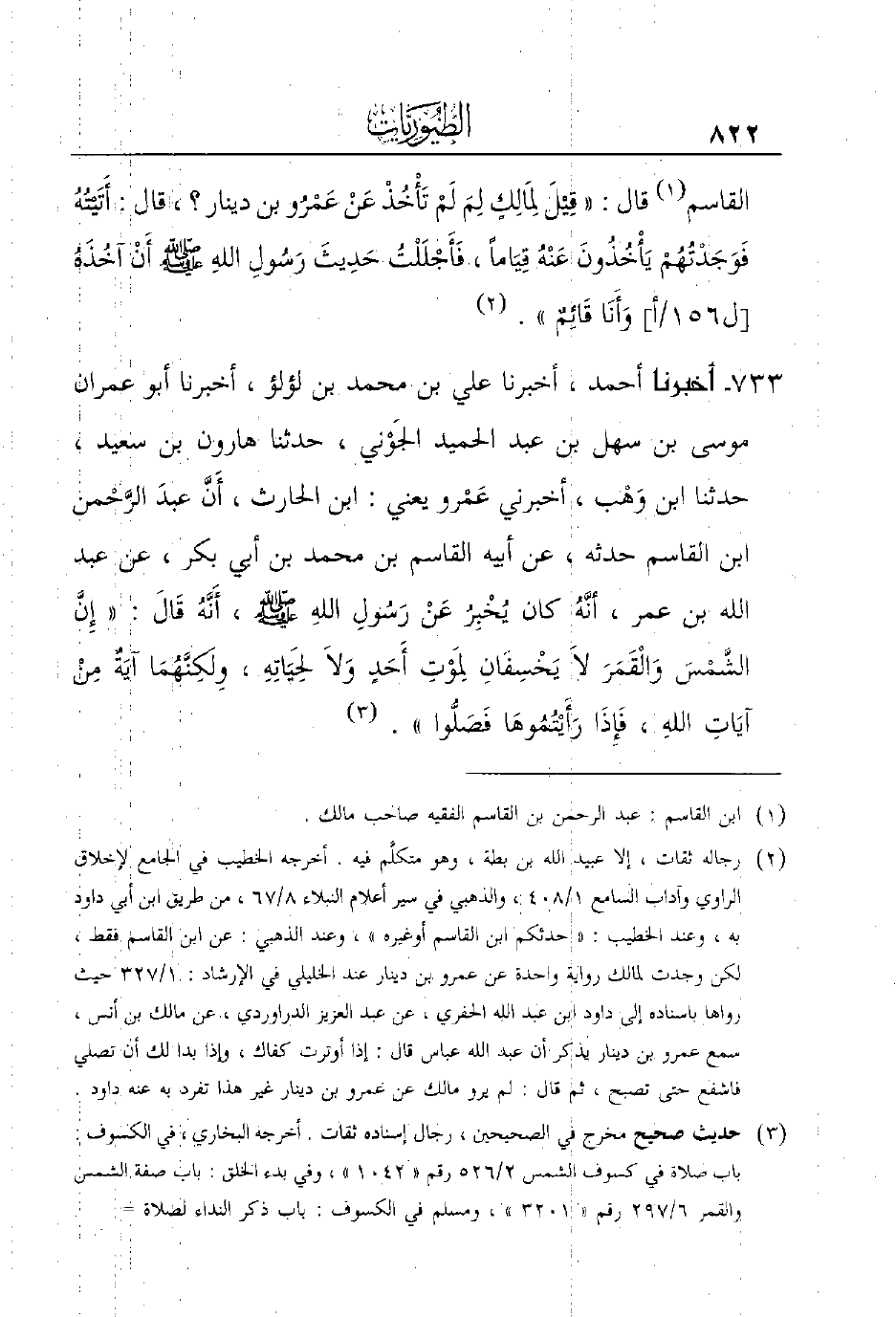 733- أَخْبَرَنَا أَحْمَدُ، أَخْبَرَنَا عَلِيٌّ بْنُ مُحَمَّدِ بْنِ لُؤْلُؤٍ، أَخْبَرَنَا أَبُو عِمْرَانَ مُوسَى بْنُ سَهْلٍ