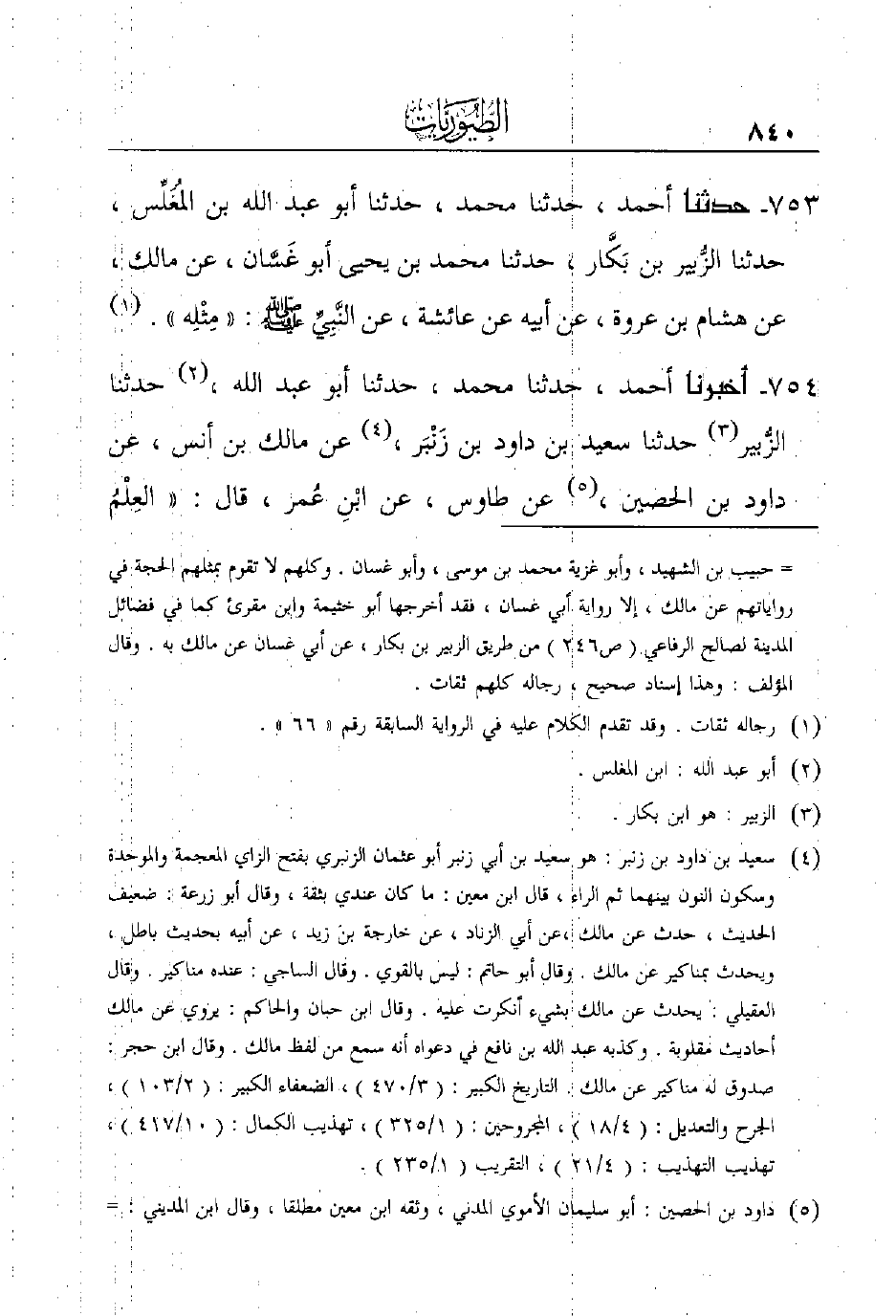 754- أَخْبَرَنَا أَحْمَدُ، حَدَّثَنَا مُحَمَّدٌ، حَدَّثَنَا أَبُو عَبْدِ اللَّهِ، (¬2) حدثنا الزُّبير،. (¬3) حدثنا سعيد