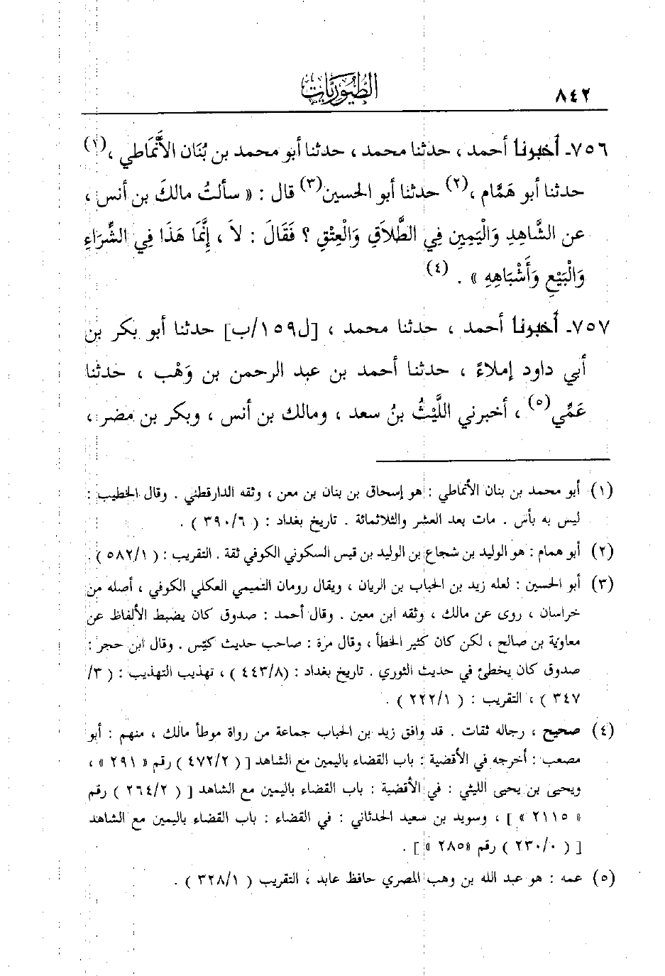757 – أخبرنا أحمد، حدثنا محمد، [ل159/ب] حَدَّثَنَا أَبُو بَكْرِ بْنُ أَبِي داود إملاء، حدثنا أحمد بن عبد الرحمن بن وَهْب، حدثنا عَمِّي (¬5) ، أخبرني اللَّيْثُ ابنُ سعد، ومالك