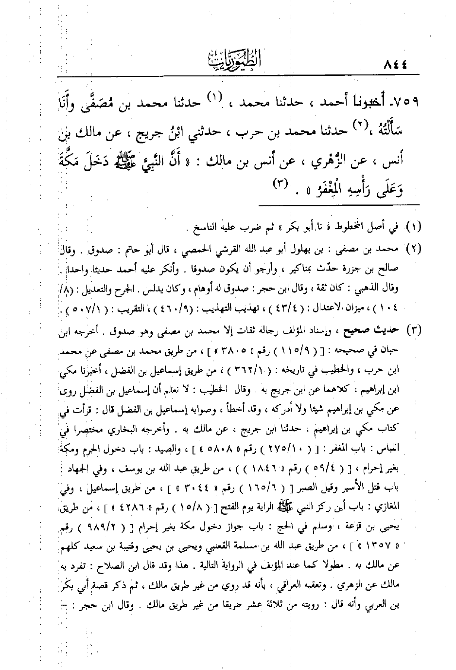 759- أَخْبَرَنَا أَحْمَدُ، حَدَّثَنَا مُحَمَّدٌ، (¬1) حَدَّثَنَا مُحَمَّدُ بْنُ مُصَفَّى وأَنَا سَأَلْتُهُ، (¬2) حَدَّثَنَا