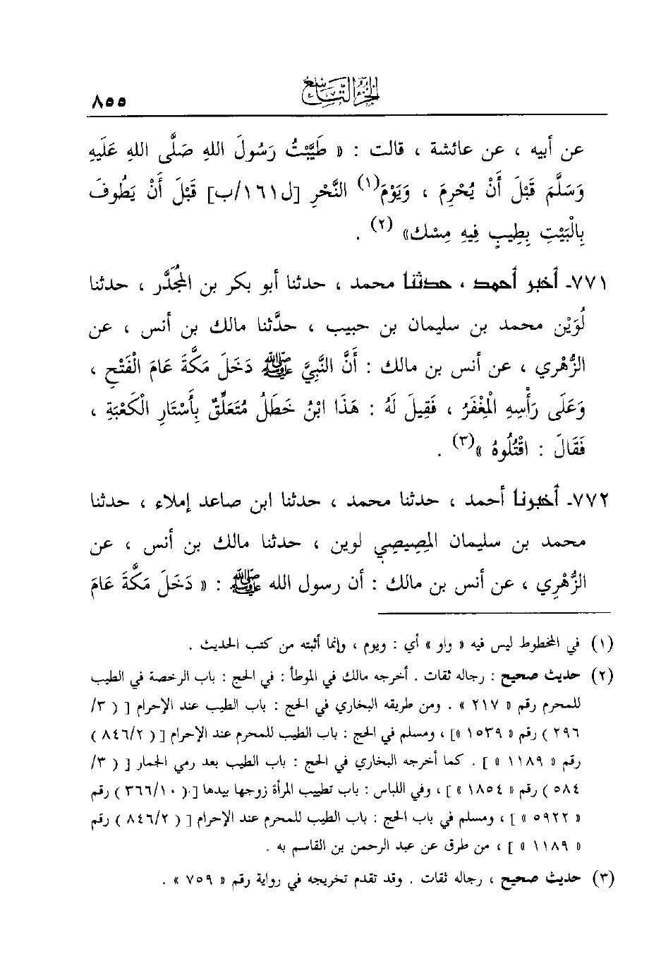 772- أَخْبَرَنَا أَحْمَدُ، حَدَّثَنَا مُحَمَّدٌ، حَدَّثَنَا ابْنُ صَاعِدٍ إِمْلاءً، حَدَّثَنَا مُحَمَّدُ بْنُ سُلَيْمَانَ المِصِيصِي لُوَيْنٌ، حَدَّثَنَا مَالِكُ بْنُ أَنَسٍ، عَنِ الزُّهْرِي، عَنْ أَنَسِ بْنِ مَالِكٍ: أَنَّ رَسُولُ اللَّهِ صَلَّى اللَّهُ عَلَيْهِ وَسَلَّمَ: ((دَخَلَ مَكَّةَ عَامَ