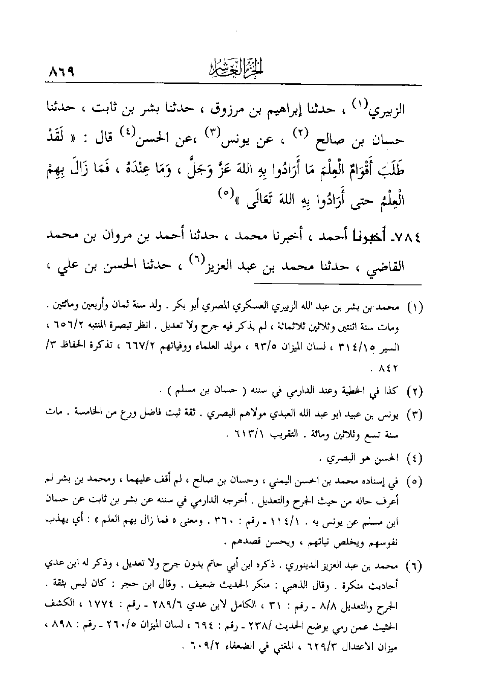 الزبيري (¬1) ، حدثنا إبراهيم بن مرزوق، حدثنا بشر بن ثابت، حدثنا حسان بن صالح (¬2) ، عن يونس (¬3) ، عن الحسن (¬4) قال: ((لَقَدْ طَلَبَ أَقْوَامٌ الْعِلْمَ مَا أَرَادُوا بِهِ اللهَ عَزَّ وَجَلَّ، وَمَا عِنْدَهُ، فَمَا زَالَ بِهِمْ الْعِلْمُ حتى أَرَادُوا بِهِ اللهَ تَعَالَى)) (¬5)