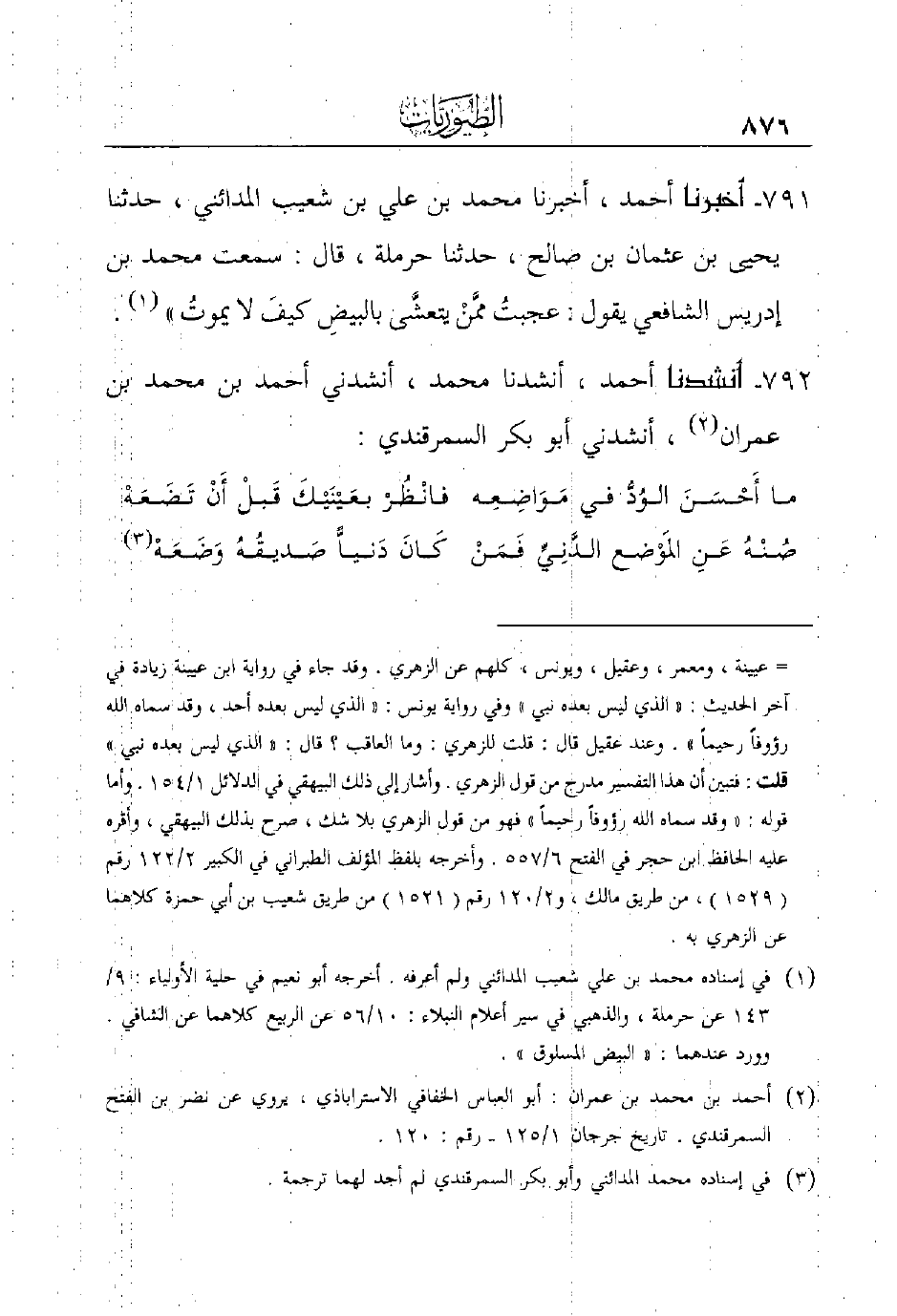 792 - أنشدنا أحمد، أنشدنا محمد، أنشدني أحمد بن محمد بن عمران (¬2) ، أنشدني أبو بكر السمرقندي:
