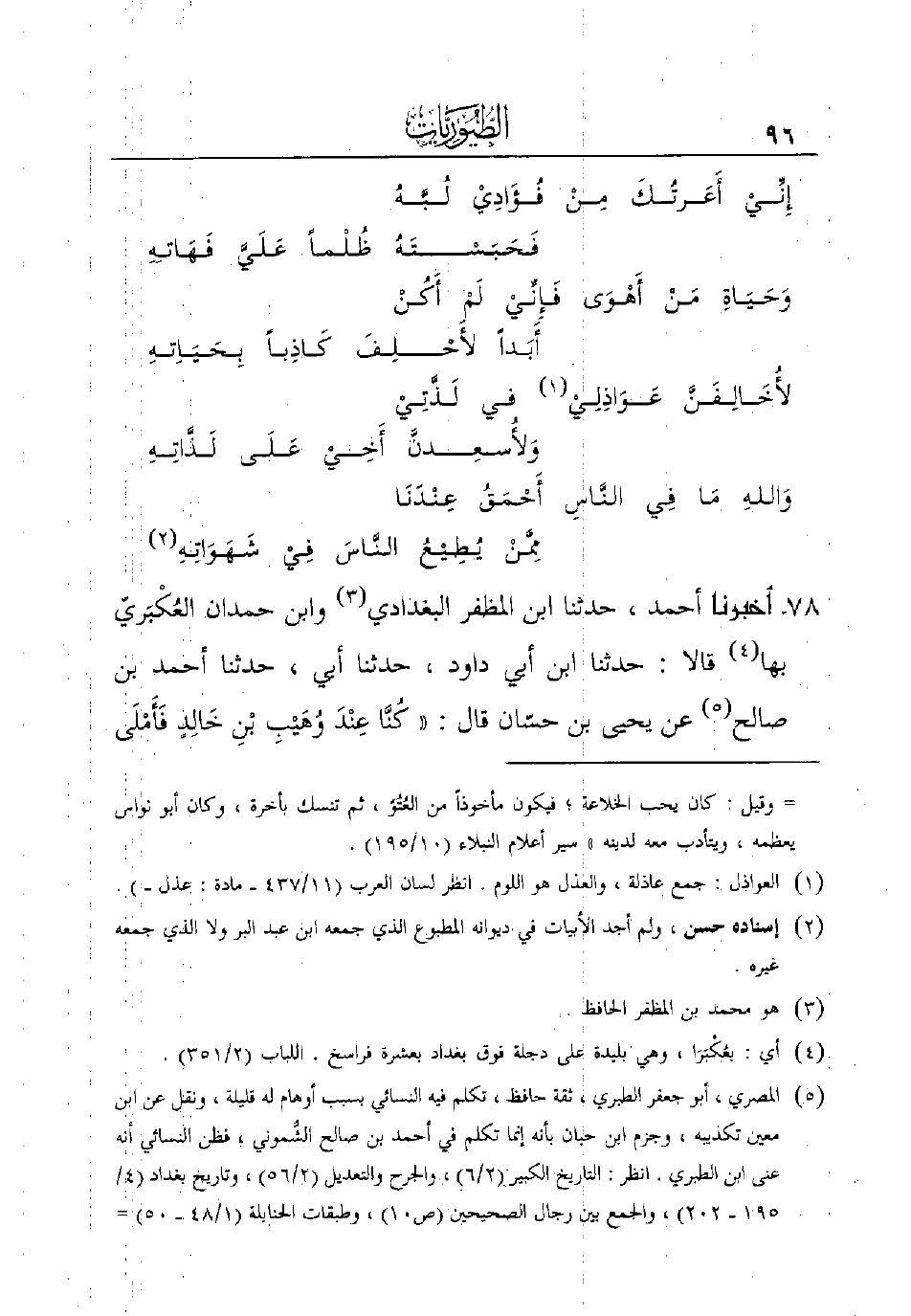 وَاللهِ مَا فِي النَّاسِ أَحْمَقُ عِنْدَنَا ... مِمَّنْ يُطِيْعُ النَّاسَ فِيْ شَهَوَاتِهِ (¬2)