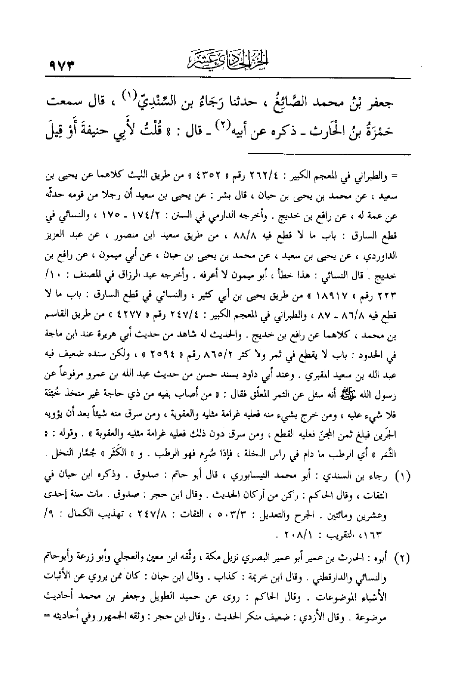 ابْنُ محمد الصَّائِغُ، حدثنا رَجَاءُ بن السِّنْدِيّ (¬1) ، قال سمعت حَمْزَةُ بنُ الْحَارث - ذكره