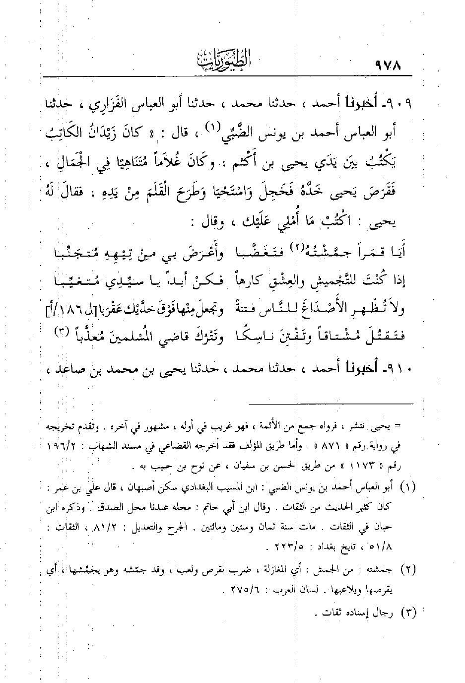 910 - أَخْبَرَنَا أَحْمَدُ، حَدَّثَنَا مُحَمَّدٌ، حَدَّثَنَا يَحْيَى بْنُ محمد بن صاعد،