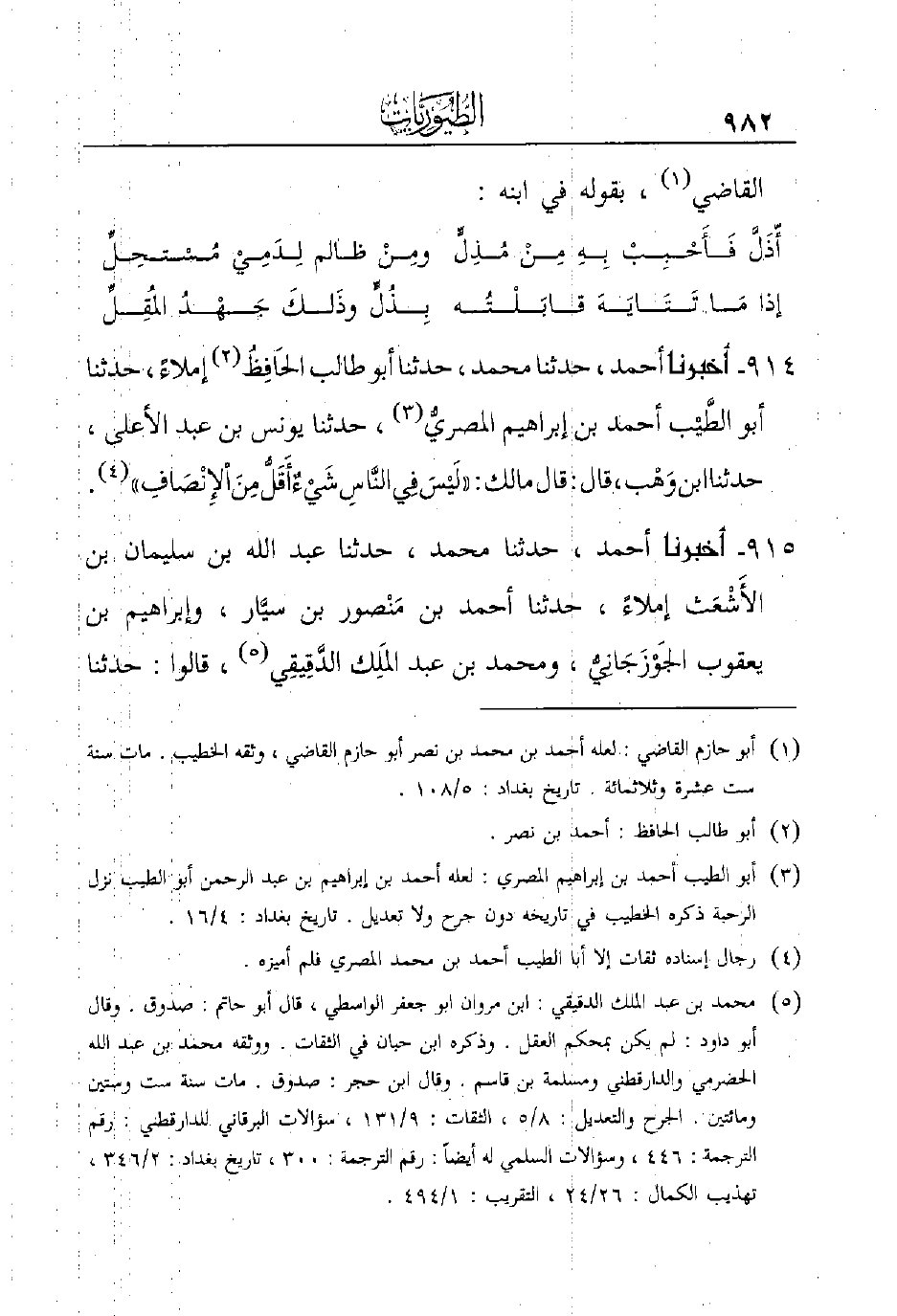 915 - أَخْبَرَنَا أَحْمَدُ، حَدَّثَنَا مُحَمَّدٌ، حَدَّثَنَا عبد الله بن سليمان بن الأَشْعَث إِمْلاءً، حَدَّثَنَا أَحْمَدُ بْنُ مَنْصور بْنِ سيَّار، وَإِبْرَاهِيمُ بْنُ يَعْقُوبَ الجَوْزَجَانِيُّ، وَمُحَمَّدُ بْنُ عَبْدِ المَلِك الدَّقِيقِي (¬5) ، قَالُوا: حَدَّثَنَا