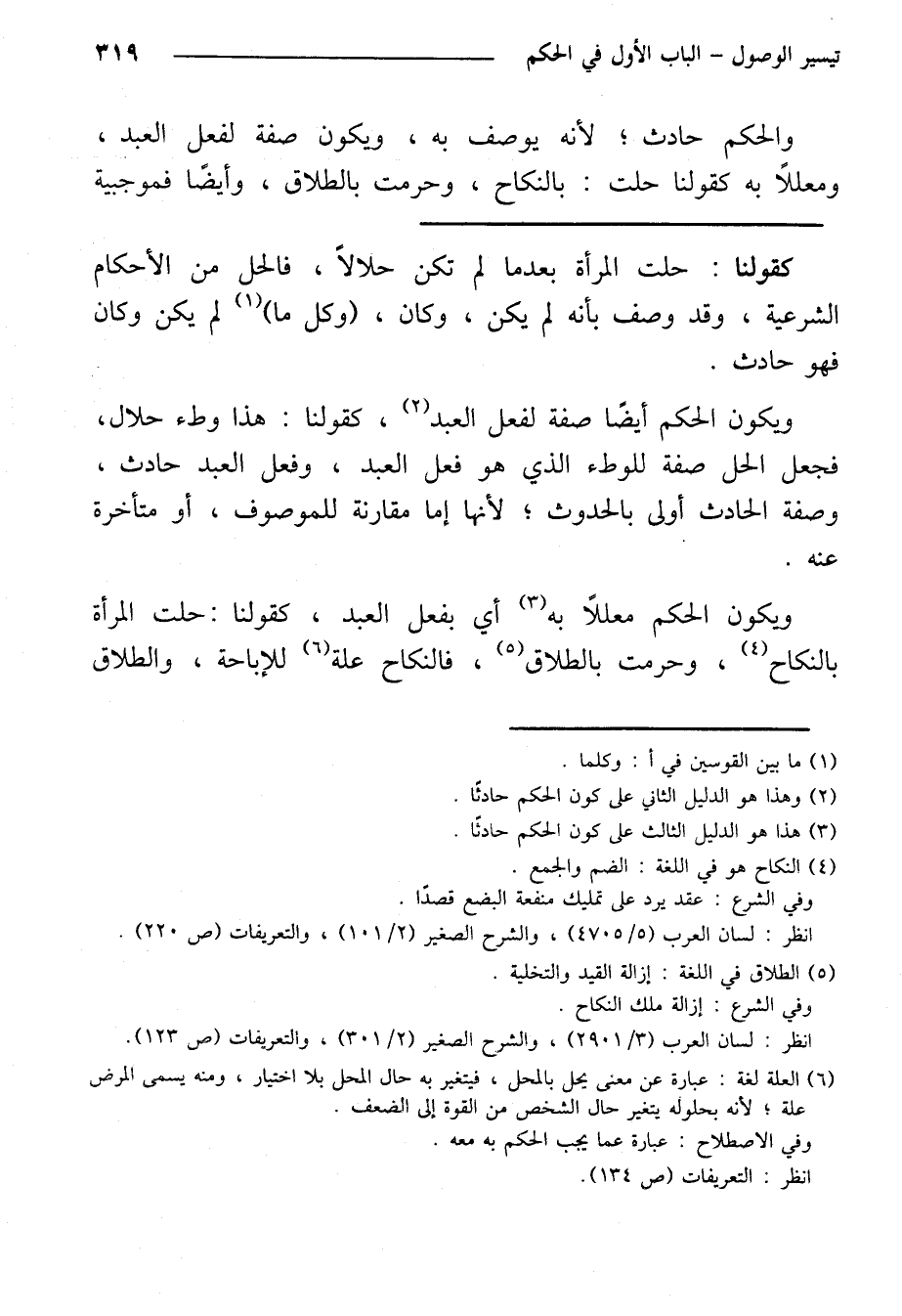 كقولنا: حلت المرأة بعدما لم تكن حلالًا، فالحل من الأحكام الشرعية، وقد وصف بأنه لم يكن، وكان، (وكل ما) لم يكن وكان فهو حادث.