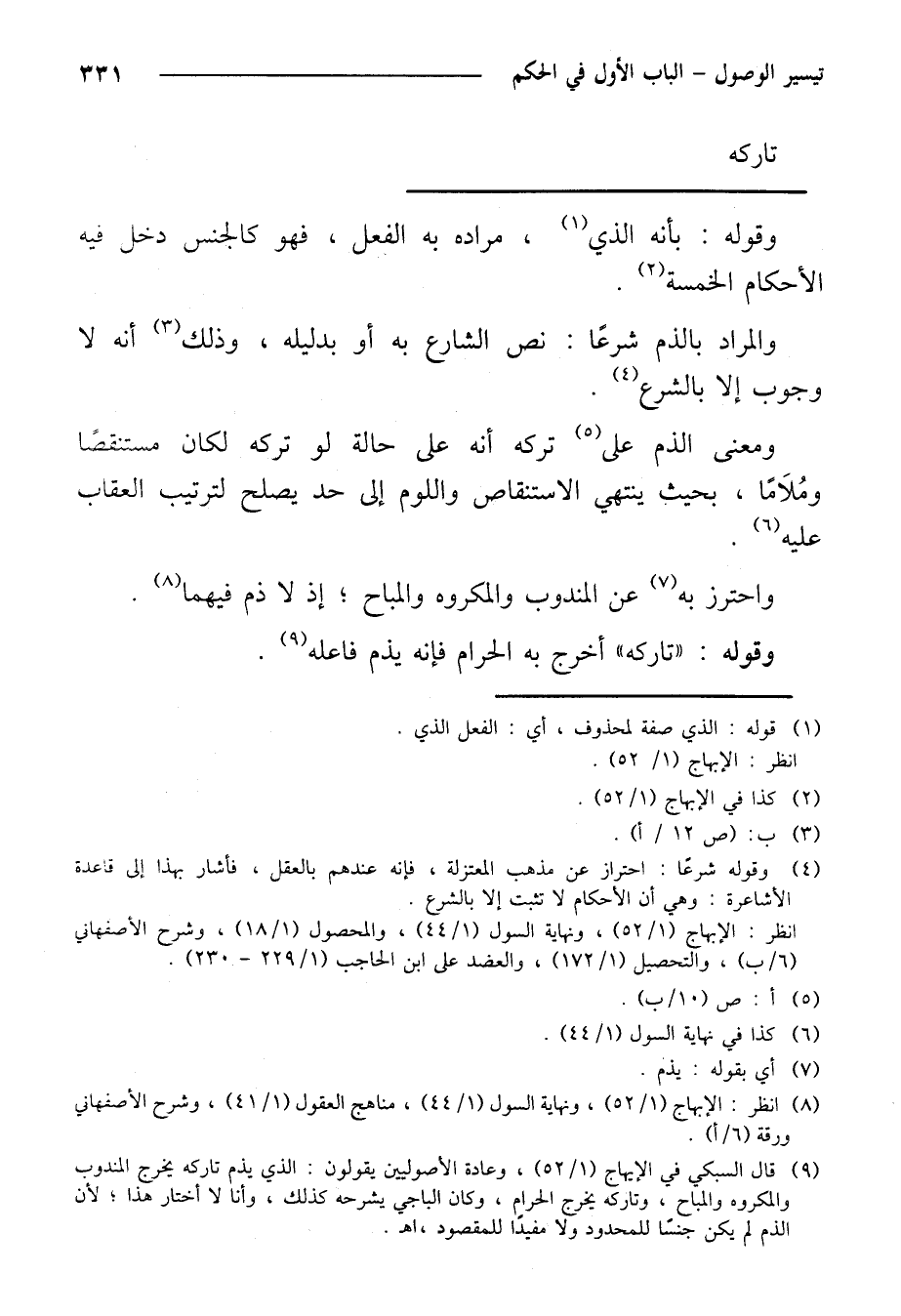وقوله: ((تاركه)) أخرج به الحرام فإنه يذم فاعله.
