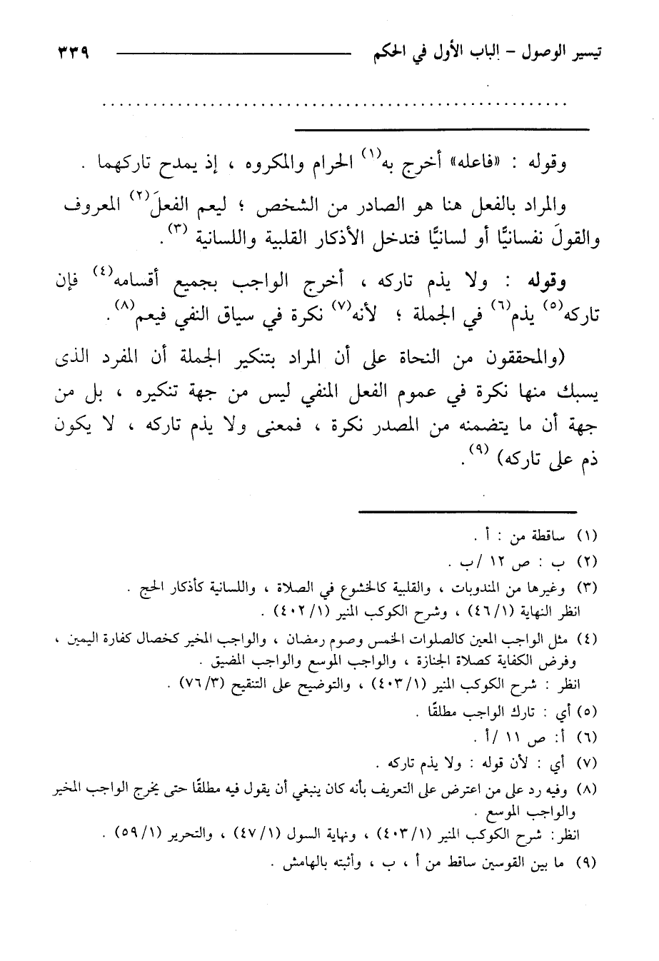 وقوله: ولا يذم تاركه، أخرج الواجب بجميع أقسامه فإن تاركه يذم في الجملة؛ لأنه نكرة في سياق النفي فيعم.
