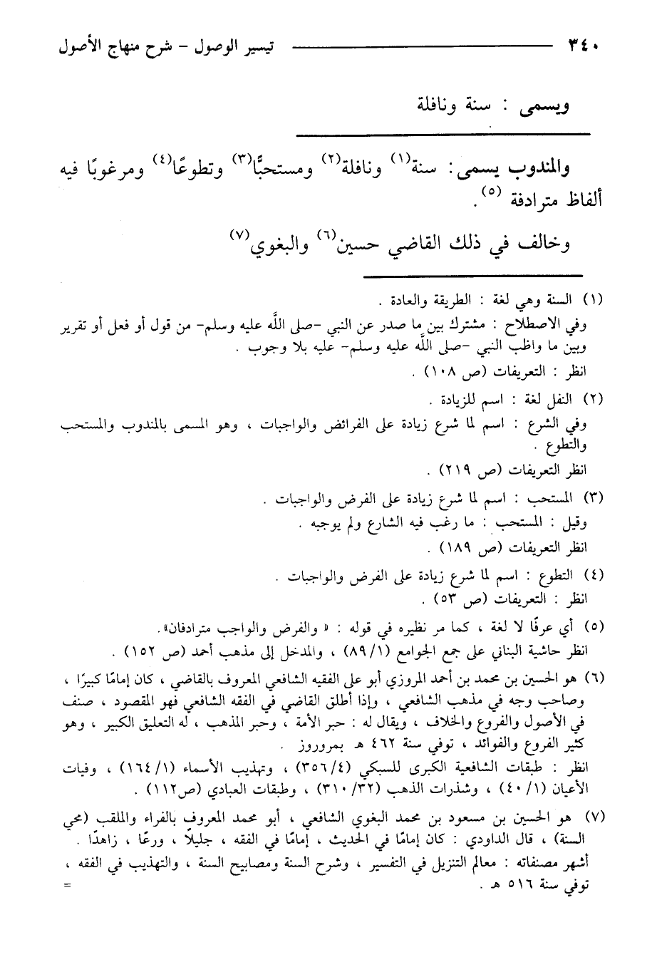 والمندوب يسمى: سنة ونافلة ومستحبًّا وتطوعًا ومرغوبًا فيه ألفاظ مترادفة.