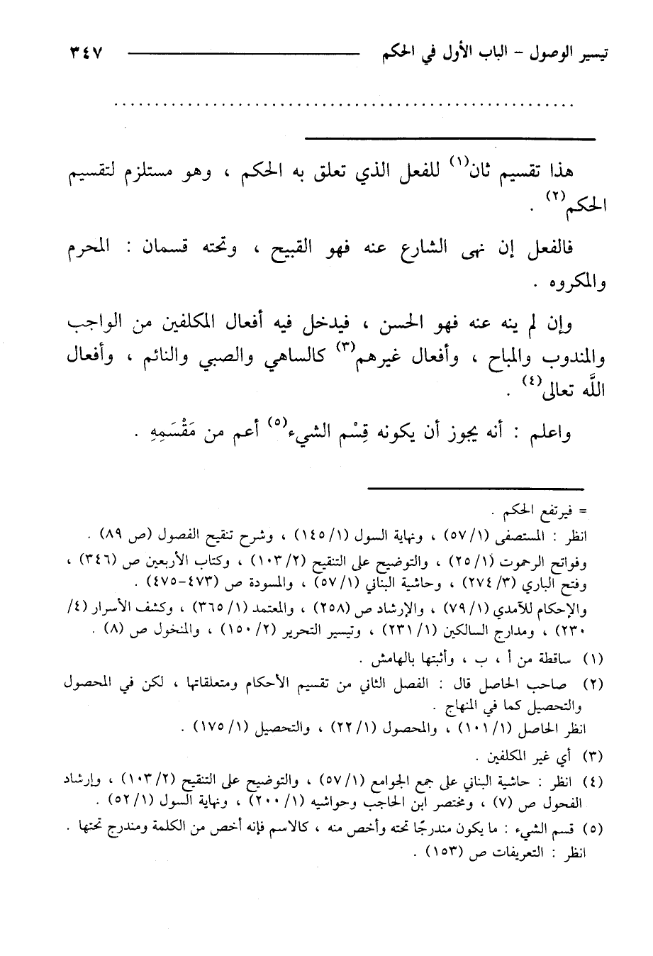 هذا تقسيم ثان للفعل الذي تعلق به الحكم، وهو مستلزم لتقسيم الحكم.