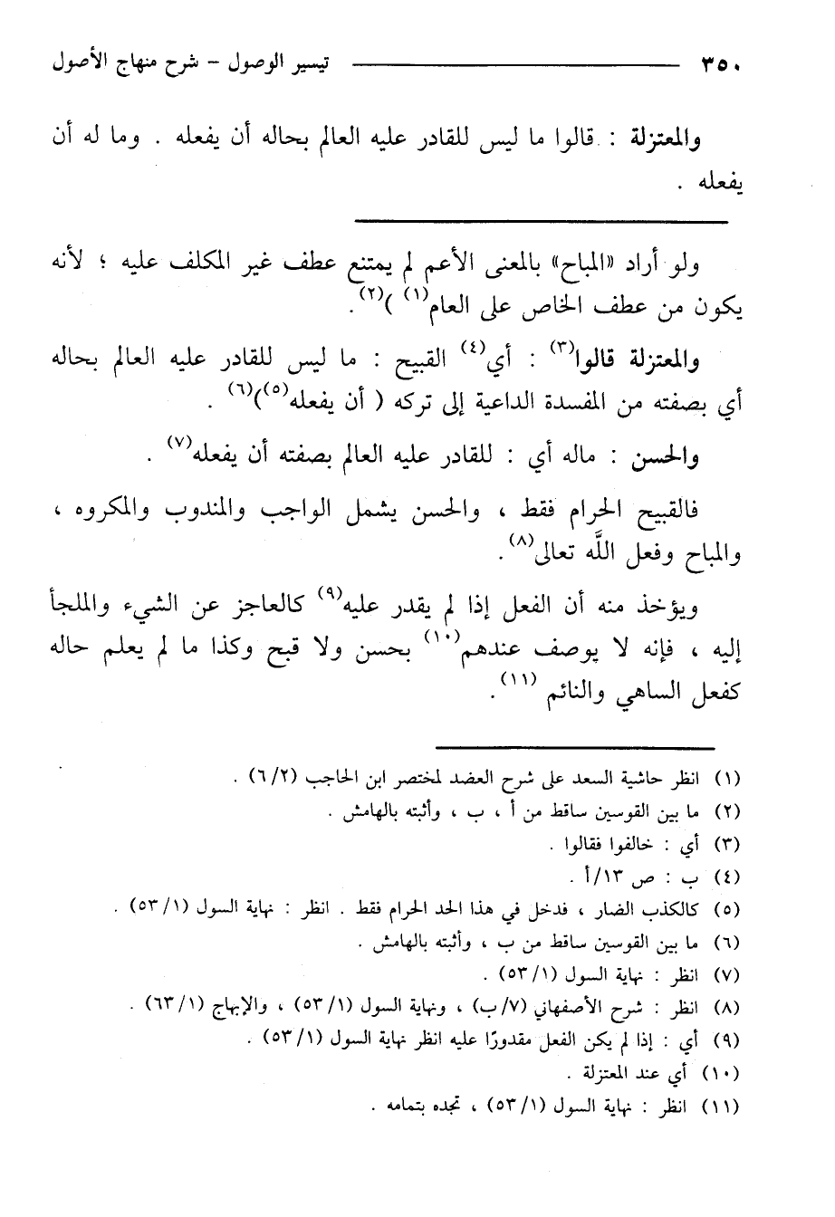 والمعتزلة قالوا: أي القبيح: ما ليس للقادر عليه العالم بحاله أي بصفته من المفسدة الداعية إلى تركه (أن يفعله).