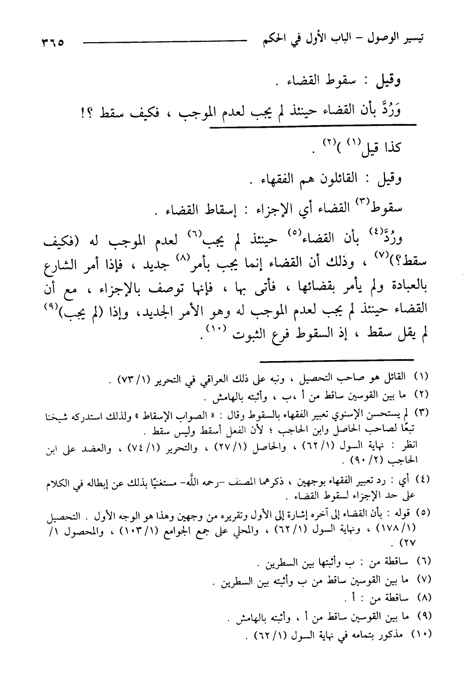 سقوط القضاء أي الأجزاء: إسقاط القضاء.