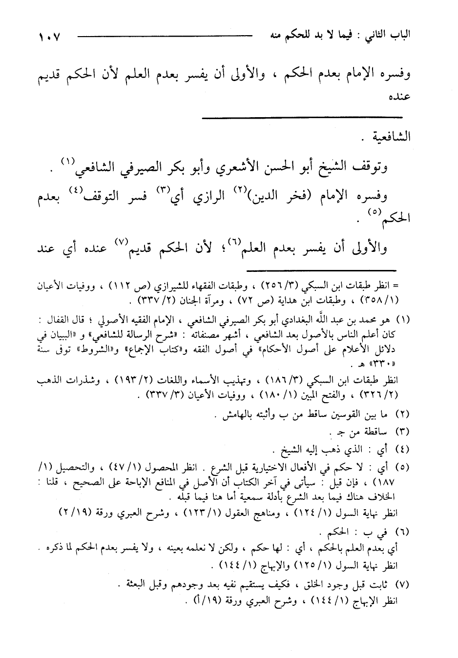 وتوقف الشيخ أبو الحسن الأشعري وأبو بكر الصيرفي الشافعي.