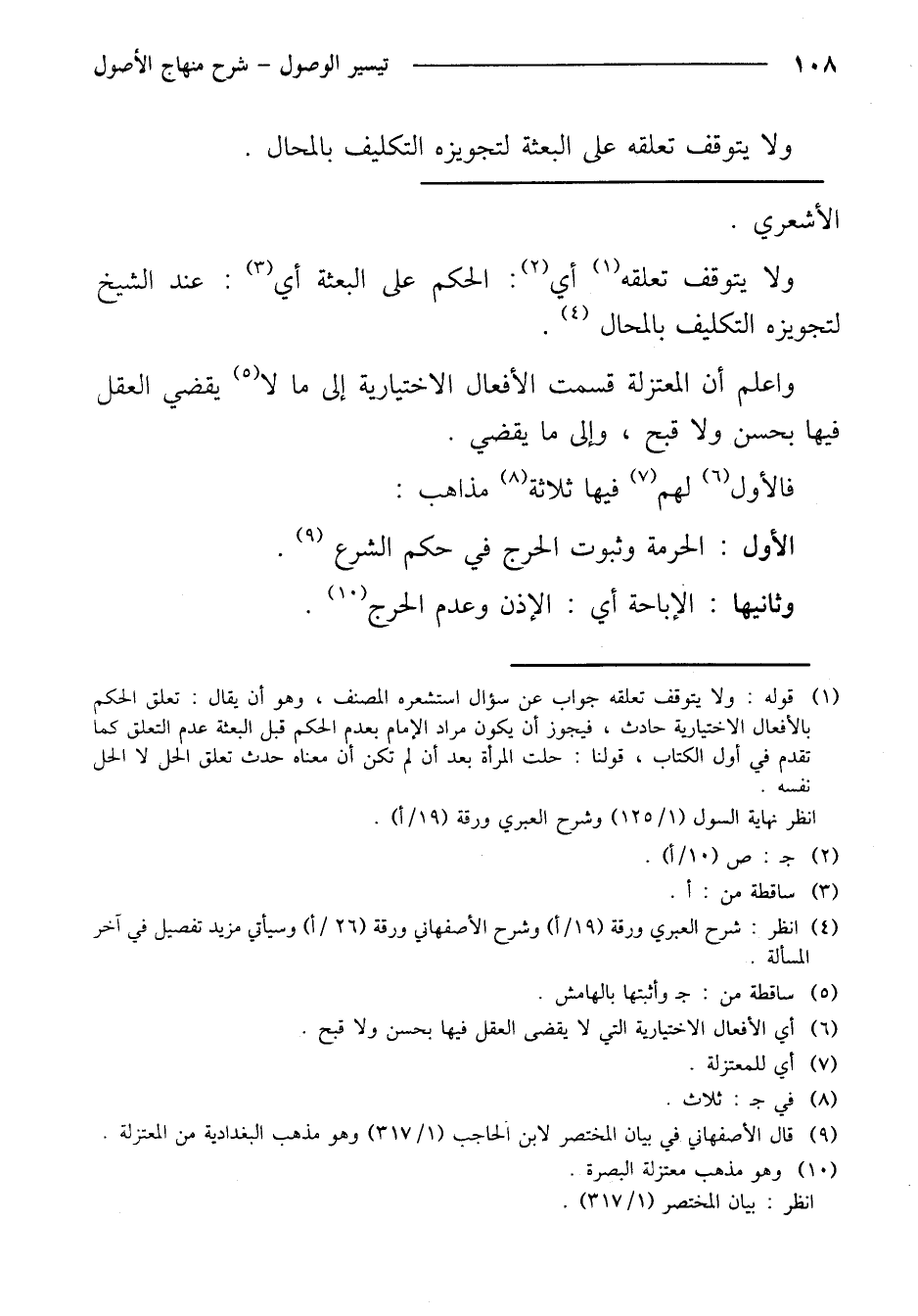 واعلم أن المعتزلة قسمت الأفعال الاختيارية إلى ما لا يقضي العقل فيها بحسن ولا قبح، وإلى ما يقضي.