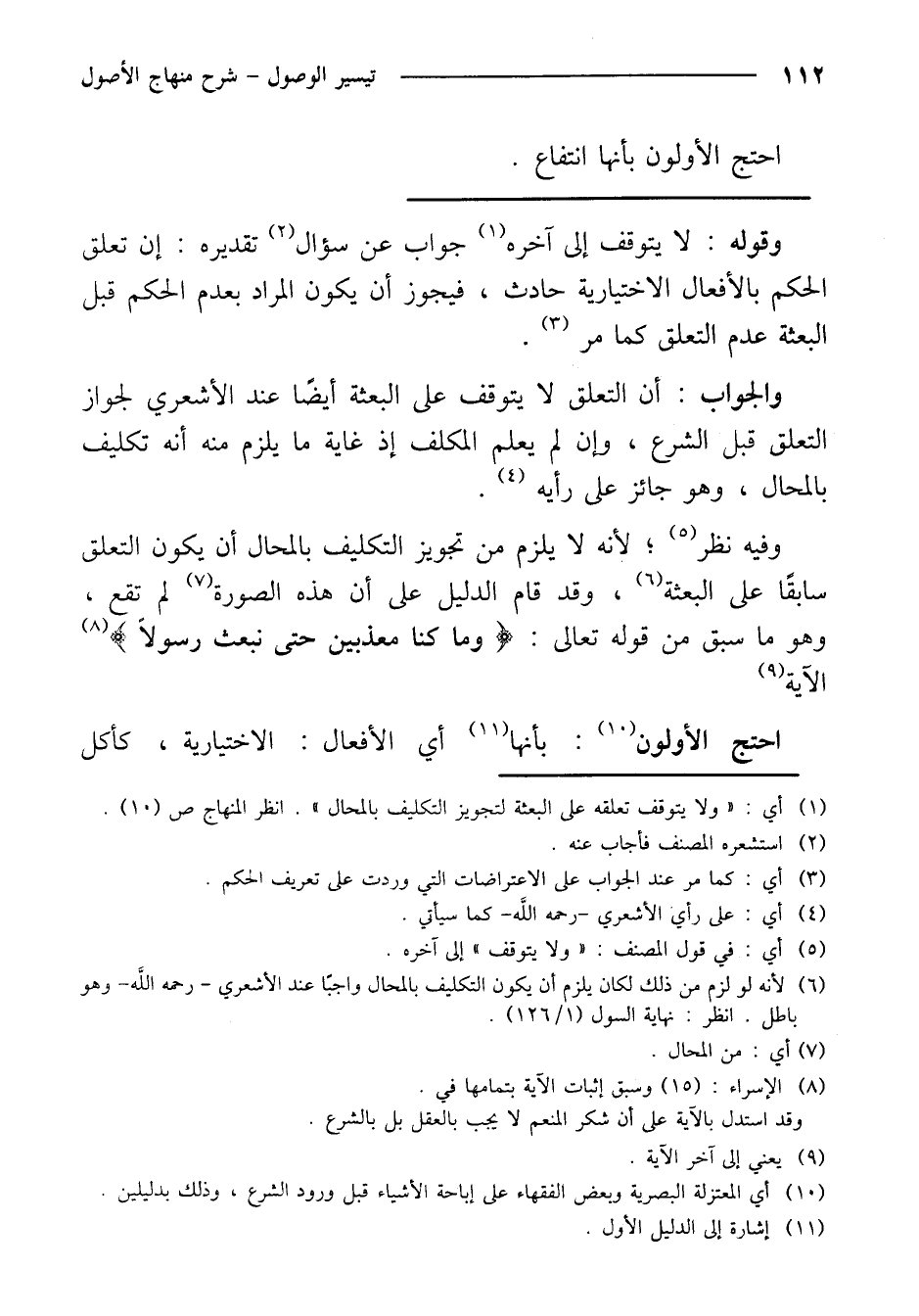 احتج الأولون: بأنها أي الأفعال: الاختيارية، كأكل