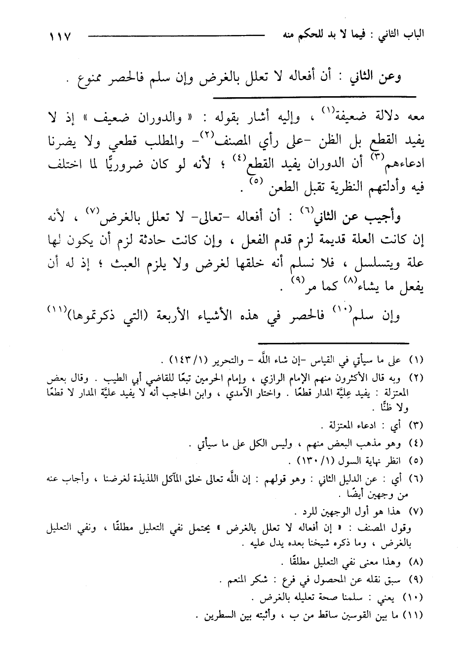 وأجيب عن الثاني: أن أفعاله -تعالى- لا تعلل بالغرض، لأنه إن كانت العلة قديمة لزم قدم الفعل، وإن كانت حادثة لزم أن يكون لها علة ويتسلسل، فلا نسلم أنه خلقها لغرض ولا يلزم العبث؛ إذ له أن يفعل ما يشاء كما مر.