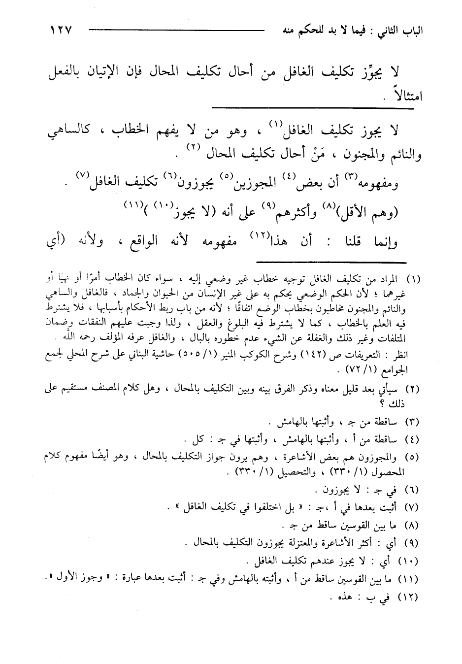 لا يجوز تكليف الغافل، وهو من لا يفهم الخطاب، كالساهي والنائم والمجنون، من أحال تكليف المحال.