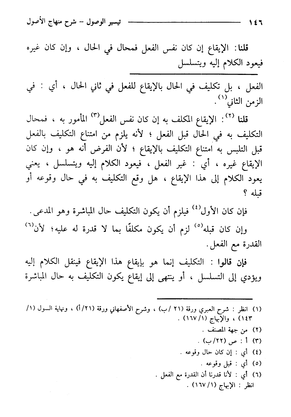 قلنا: الإيقاع المكلف به إن كان نفس الفعل المأمور به، فمحال التكليف به في الحال قبل الفعل؛ لأنه يلزم من امتناع التكليف بالفعل قبل التلبس به امتناع التكليف بالإيقاع؛ لأن الفرض أنه هو، وإن كان الإيقاع غيره، أي: غير الفعل، فيعود الكلام إليه ويتسلسل، يعني يعود الكلام إلى هذا الإيقاع، هل وقع التكليف به في حال وقوعه أو قبله؟