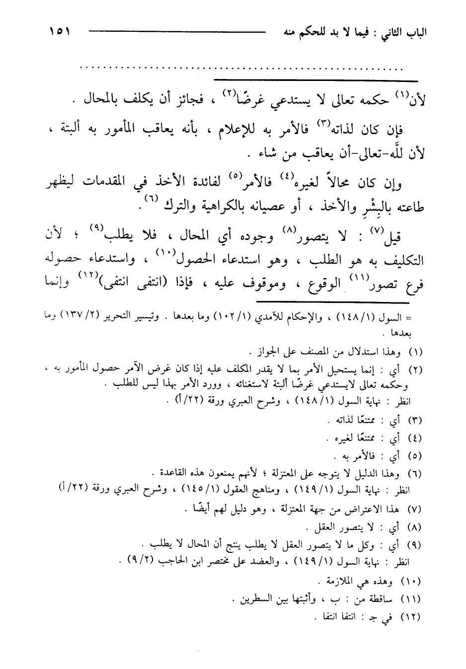 وإن كان محالاً لغيره فالأمر لفائدة الأخذ في المقدمات ليظهر طاعته بالبشر والأخذ، أو عصيانه بالكراهية والترك.