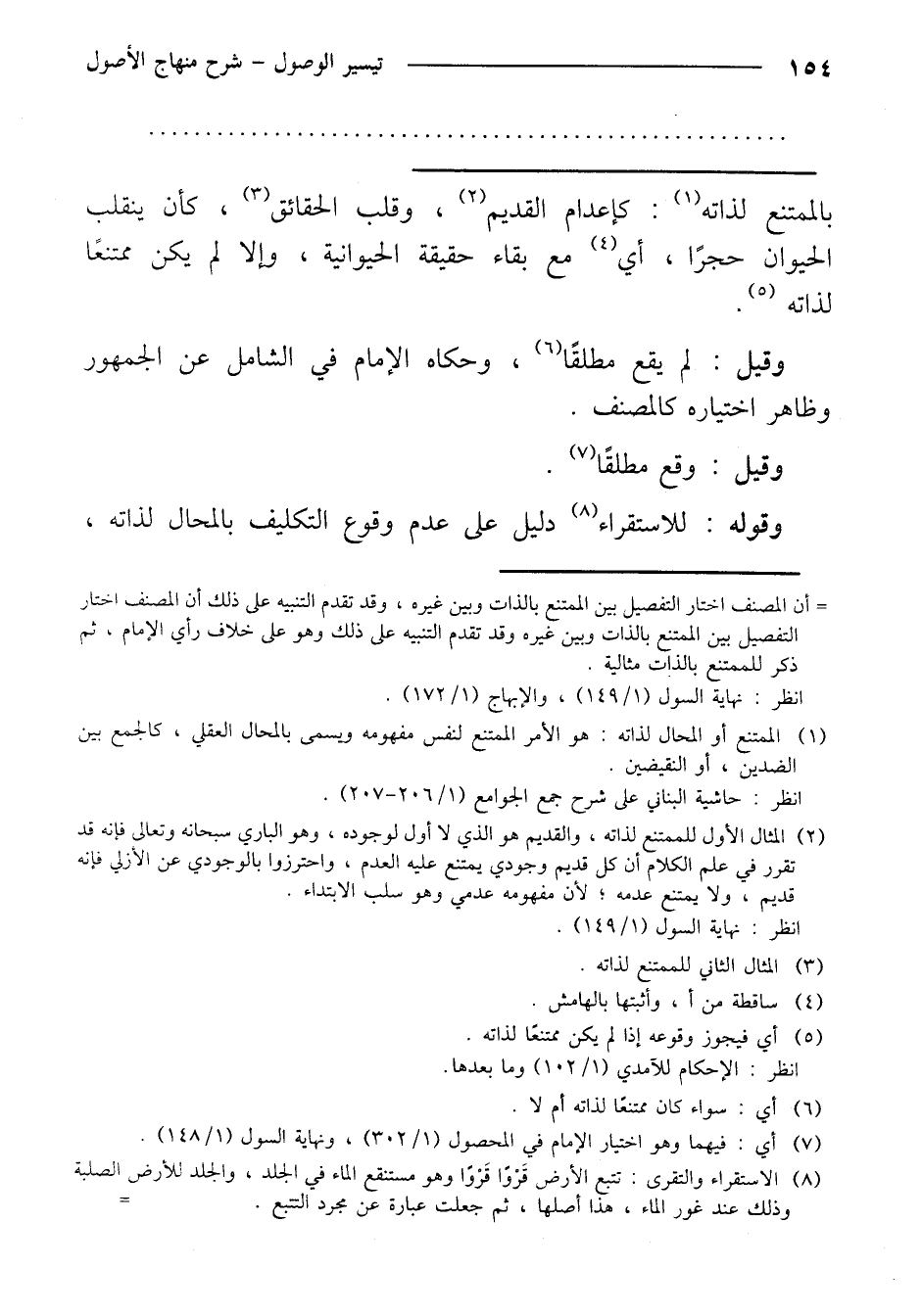 بالممتنع لذاته: كإعدام القديم، وقلب الحقائق، كأن ينقلب الحيوان حجرًا، أي مع بقاء حقيقة الحيوانية، وإلا لم يكن ممتنعًا لذاته.