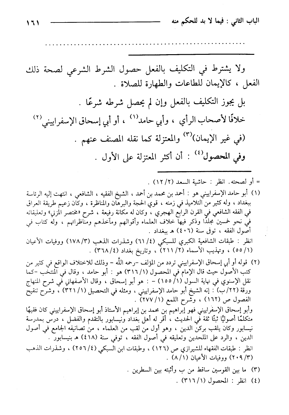 خلافًا لأصحاب الرأي، وأبي حامد، أو أبي إسحاق الإسفراييني (في غير الإيمان) والمعتزلة كما نقله المصنف عنهم.