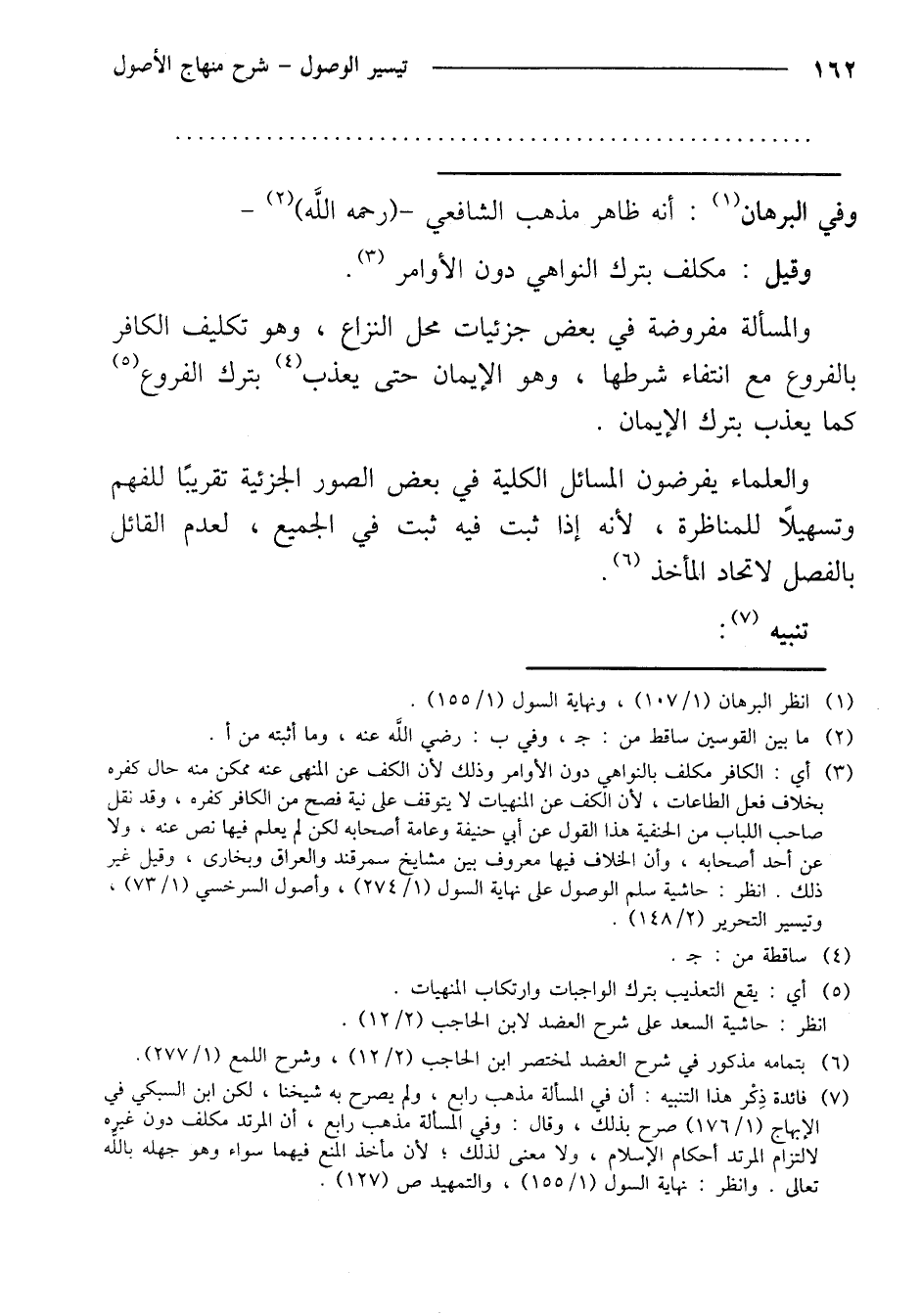 والمسألة مفروضة في بعض جزئيات محل النزاع، وهو تكليف الكافر بالفروع مع انتفاء شرطها، وهو الإيمان حتى يعذب بترك الفروع كما يعذب بترك الإيمان.