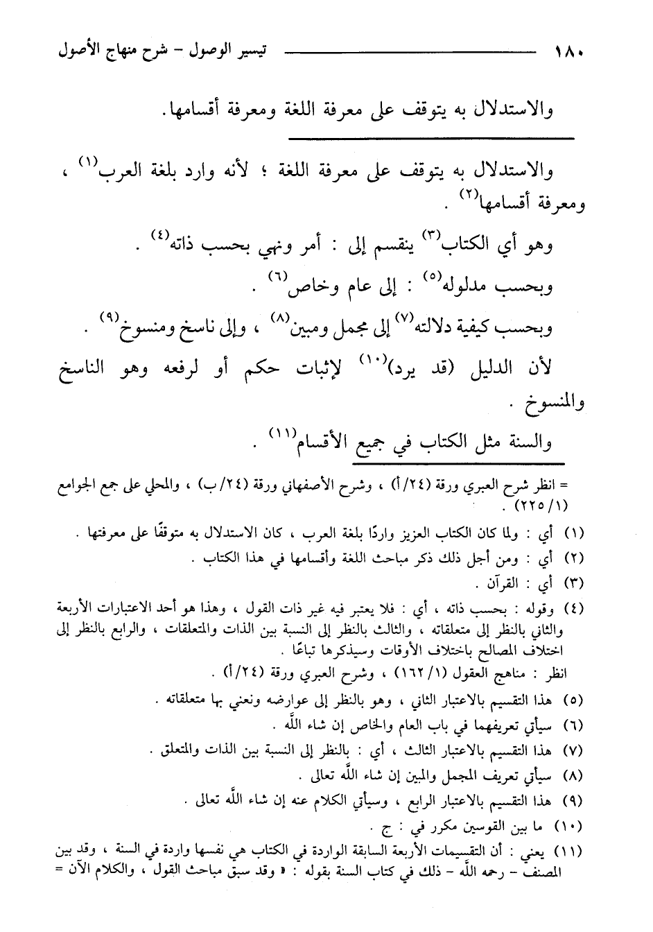وبحسب كيفية دلالته إلى مجمل ومبين، وإلى ناسخ ومنسوخ.