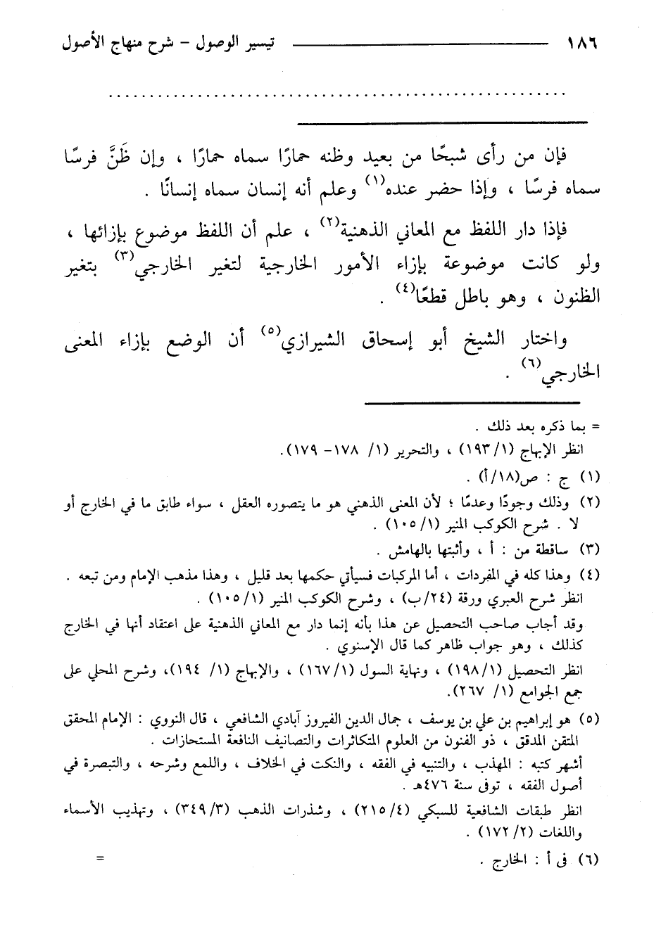 واختار الشيخ أبو إسحاق الشيرازي أن الوضع بإزاء المعنى الخارجي.