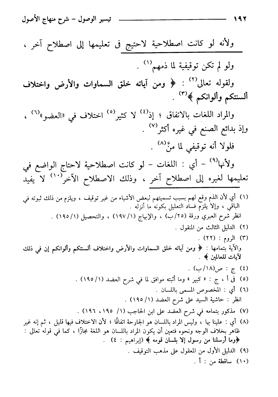 ولأنها- أي: اللغات- لو كانت اصطلاحية لاحتاج الواضع في تعليمها لغيره إلى اصطلاح آخر، وذلك الاصطلاح الآخر لا يفيد
