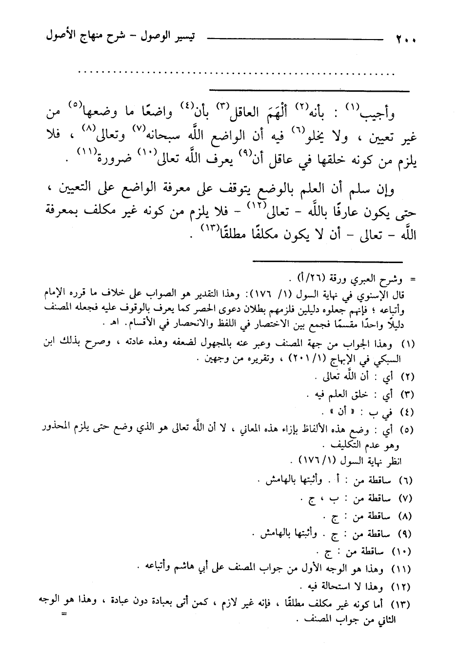 وإن سلم أن العلم بالوضع يتوقف على معرفة الواضع على التعيين، حتى يكون عارفًا بالله- تعالى- فلا يلزم من كونه غير مكلف بمعرفة الله- تعالى- أن لا يكون مكلفًا مطلقًا.