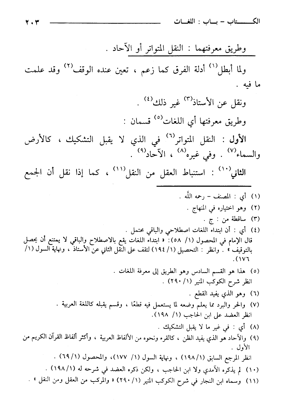 الأول: النقل المتواتر في الذي لا يقبل التشكيك، كالأرض والسماء. وفي غيره، الآحاد.