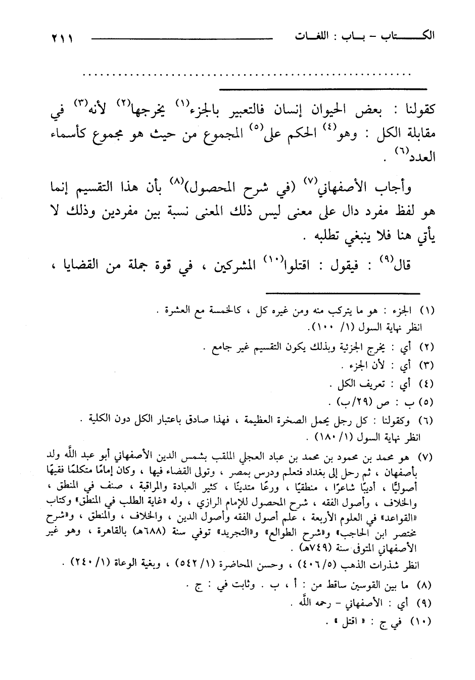 وأجاب الأصفهاني (في شرح المحصول) بأن هذا التقسيم إنما هو لفظ مفرد دال على معنى ليس ذلك المعنى نسبة بين مفردين وذلك لا يأتي هنا فلا ينبغي تطلبه.