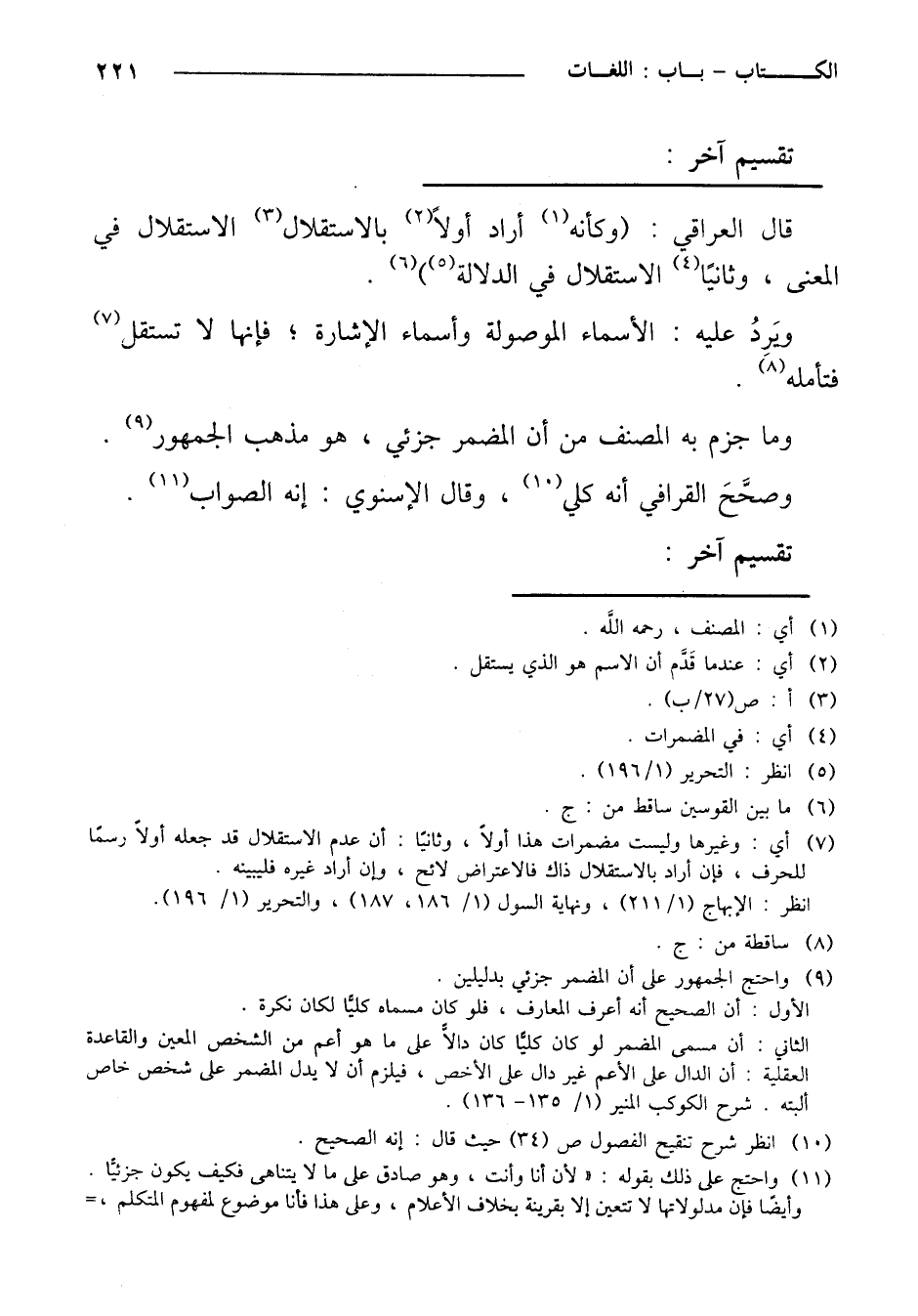قال العراقي: (وكأنه أراد أولًا بالاستقلال الاستقلال في المعنى، وثانيًا الاستقلال في الدلالة).