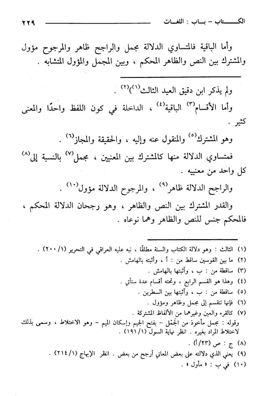فمتساوي الدلالة منها كالمشترك بين المعنيين، مجمل بالنسبة إلى كل واحد من معنييه.